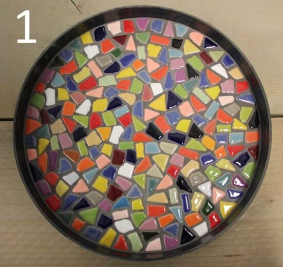 Met deze thuisworkshop mozaïek je een Kleurig Plateau.