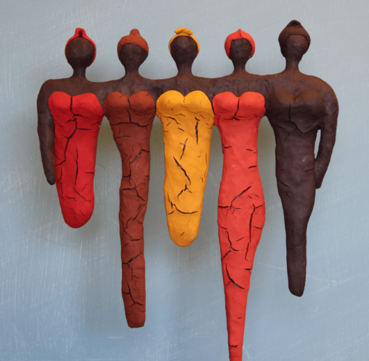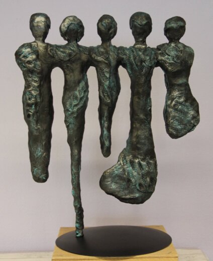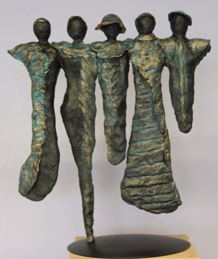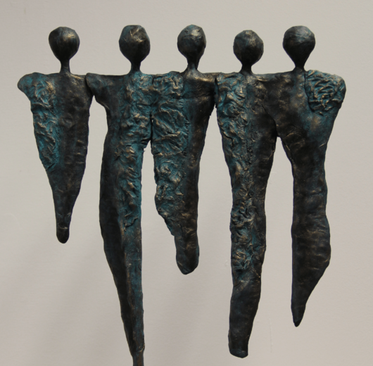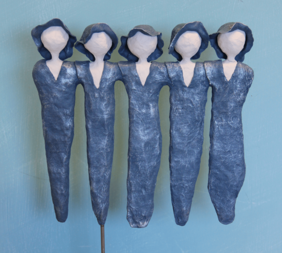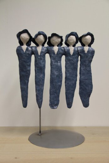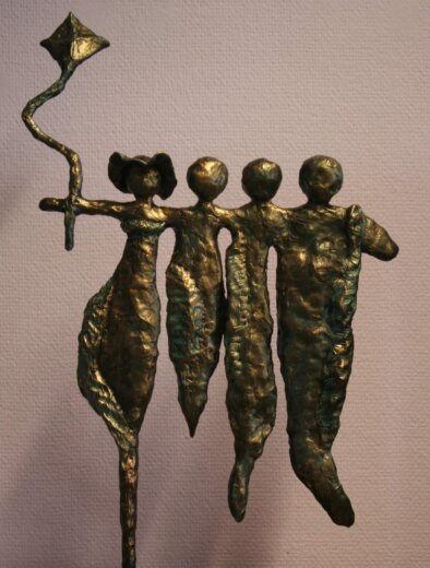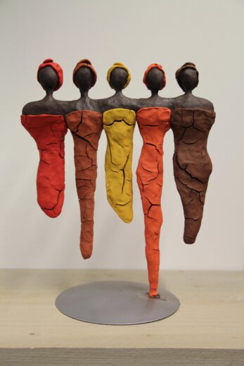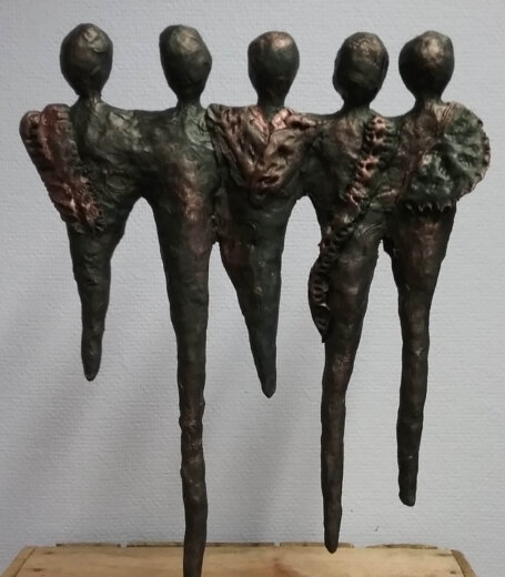 Eerst maak je de basis van 5 op een rij met aluminiumfolie. Daarna bekleed je het beeld met een soepele klei die we gemaakt hebben van Powertex en Stone Art. Je werkt 5 op een rij af door te brushen met een metallic verf.