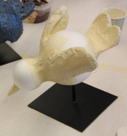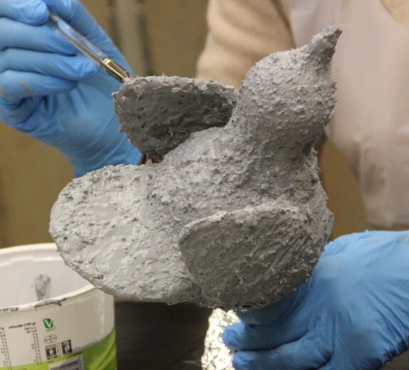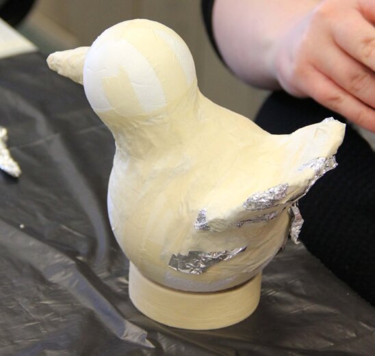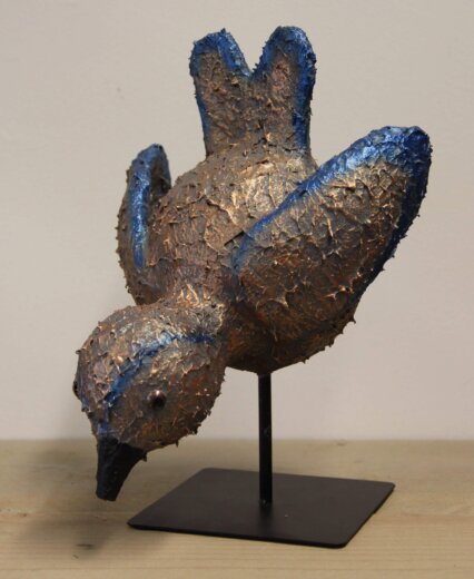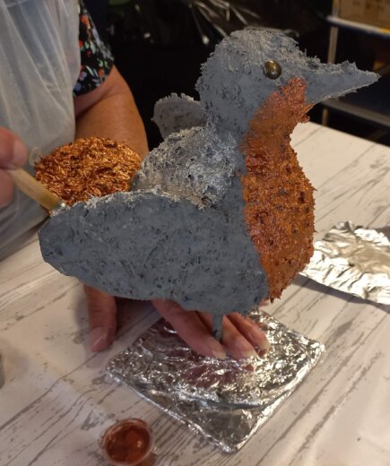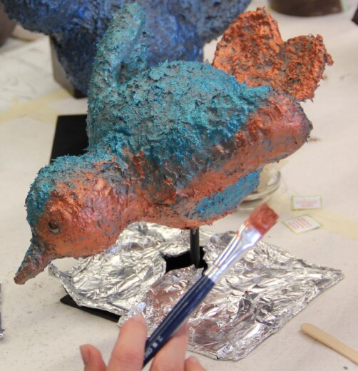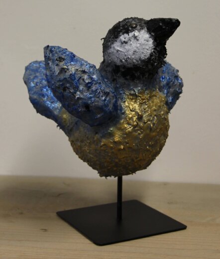 Bij deze workshop maak je eerst de basis van de Bonte Vogel met piepschuimbollen, elektriciteitsdraad en aluminiumfolie. Daarna bedek je de vogel met een dikke pasta van vloeibare loodgrijze Powertex en poedervormige Stone Art. Tot slot werk je de Bonte Vogel af door te brushen met een kwast en metallic verf. Hierdoor breng je een kleurtje aan op de grijze vogel en kun je details accentueren. Deze workshop is inclusief de metalen pin, waar de Bonte Vogel op staat.