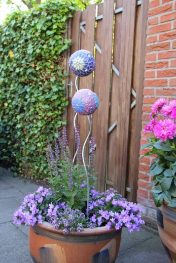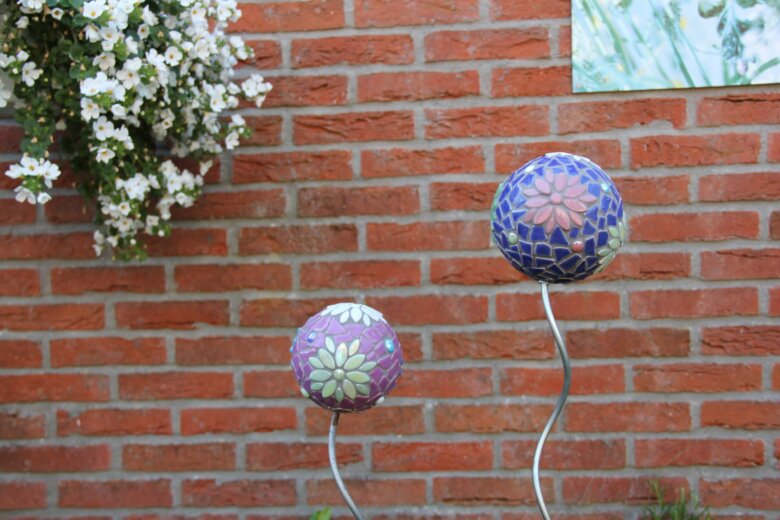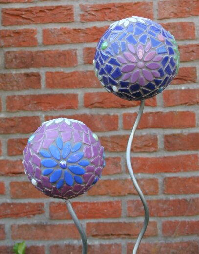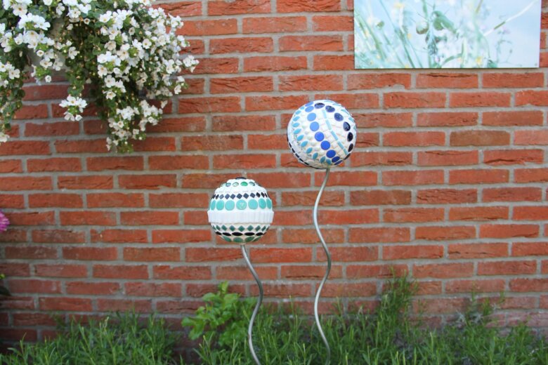 Als je de bollen op een stok wilt zetten, kun je daar zelf in een tuincentrum rechte plantenstokken of spiraalvormige tomatenstokken voor kopen.