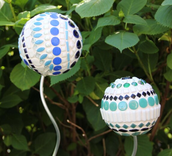 Tijdens de workshop lijm je de stenen op de bollen. Deze lijm moet 24 uur drogen voordat je kunt voegen. Je krijgt voegsel en een duidelijke werkbeschrijving mee naar huis.