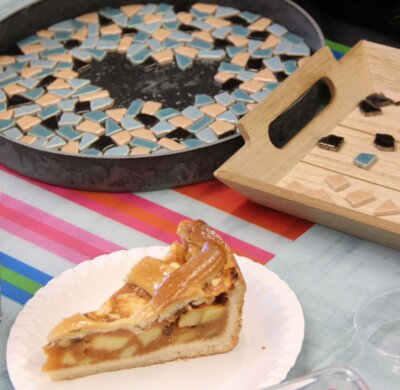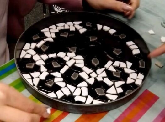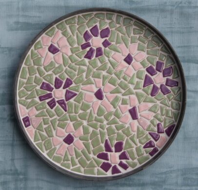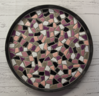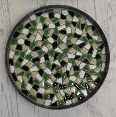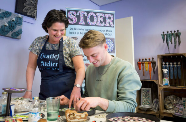 Tijdens de workshop lijm je de steentjes op de schaal. Deze lijm moet 24 uur drogen voordat je kunt voegen. Je krijgt voegsel en een duidelijke werkbeschrijving mee naar huis.
