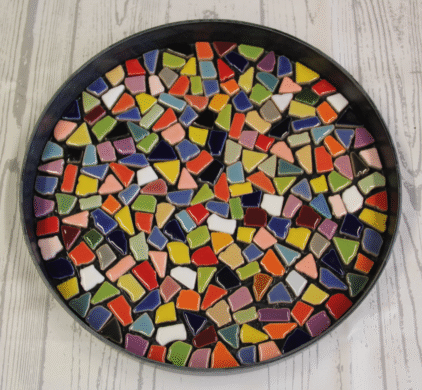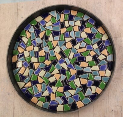 Tijdens deze workshop gebruik je kant en klare keramieksteentjes in allerlei vormen. De steentjes zijn allemaal mooi afgerond en worden niet geknipt. Je kiest in het atelier uit de kleuren van de steentjes die op dat moment op voorraad zijn.