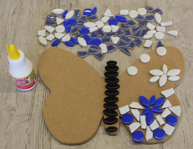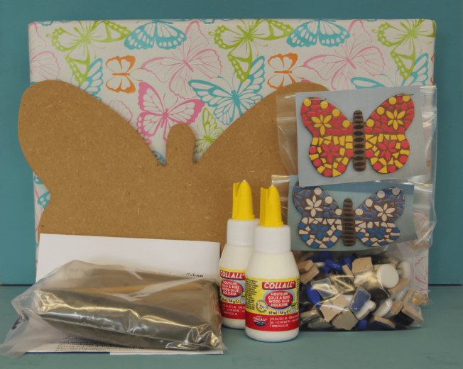 Deze mooie vlinders kunnen kinderen thuis mozaïeken. Een heel leuk compleet pakket voor een creatief kinderfeestje of een creatieve middag. In het pakket zitten alle materialen en een werkbeschrijving.