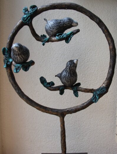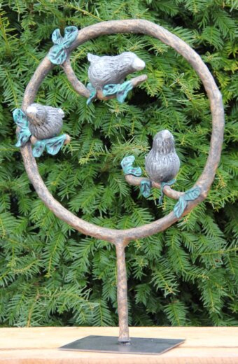 In dit pakket zit een metalen frame in de vorm van een cirkel op een voet. Je maakt de Vrolijke Vogels in 3 stappen. Eerst maak je met elektriciteitsdraad takken in de cirkel en maak je met de piepschuim bollen de basis van de vogels. Je hebt voor deze workshop zelf een kleine hoeveelheid aluminiumfolie nodig. Vervolgens maak je van de vloeibare Powertex en de poedervormige Stone Art een soepele klei. Met deze klei bekleed je het frame, de takken en de vogels en maak je blaadjes aan de takken. Je werkt de hele decoratie af door te brushen met metallic verf. Hiermee maak je de voet, de cirkel en de takken brons en de blaadjes groen. Voor de vogels kies je zelf nog een kleur (zie hieronder uit welke kleuren je kunt kiezen).
